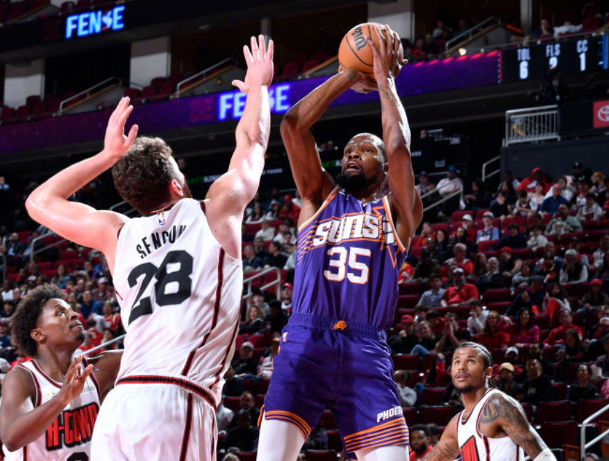 同阶段约基奇和申京的助攻比率相差不大。也就是说,从18-19赛季起,掘金逐渐树立约基奇为绝对核心,进攻端球权支配权比例提升;而在火箭队,申京球权比例没有那么高的情况下,他的完成率很高。还有两个数据统计比较有趣,上赛季申京出战的比赛,只要杰伦格林不在,火箭从任意五人组到任意两人组(带申京),始终都是赢分;特别是到季后赛,这一点体现的特别明显,火箭打勇士最强五人组是:范弗里特+布鲁克斯+申京+小贾+亚当斯,百回合赢对手30分。休赛期,火箭终于送走了累赘包袱杰伦格林,换来了杜兰特。